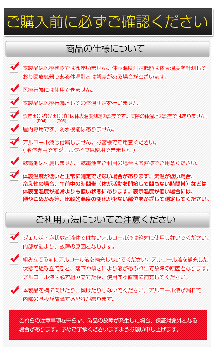 | 測定範囲 | 5~10cm 10℃~42℃ 32℃以下でLo 42℃以上でHi 32℃~37.3℃ 緑ランプ 37.4℃~37.9℃ 黄ランプ 38℃~42℃ 赤ランプ |